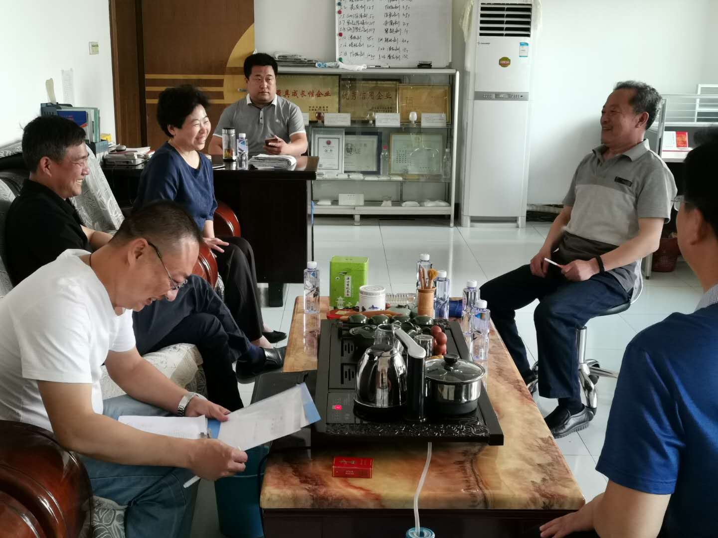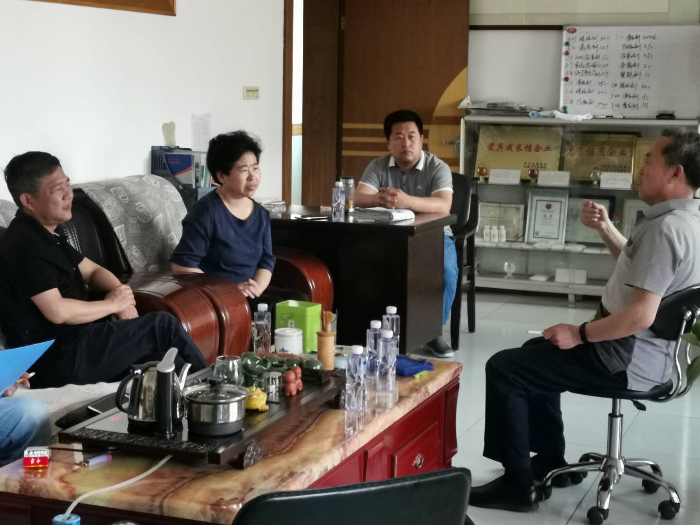 2019年5月24日,縣人大常委會副主任劉增懷、戴秀云在留各莊鎮政府領導的陪同下,來廊坊佳達化工有限公司進行調研。總經理程九苓同縣領導和鎮領導就企業現在面臨的各種問題及以后的企業的發展方向進行了交流。